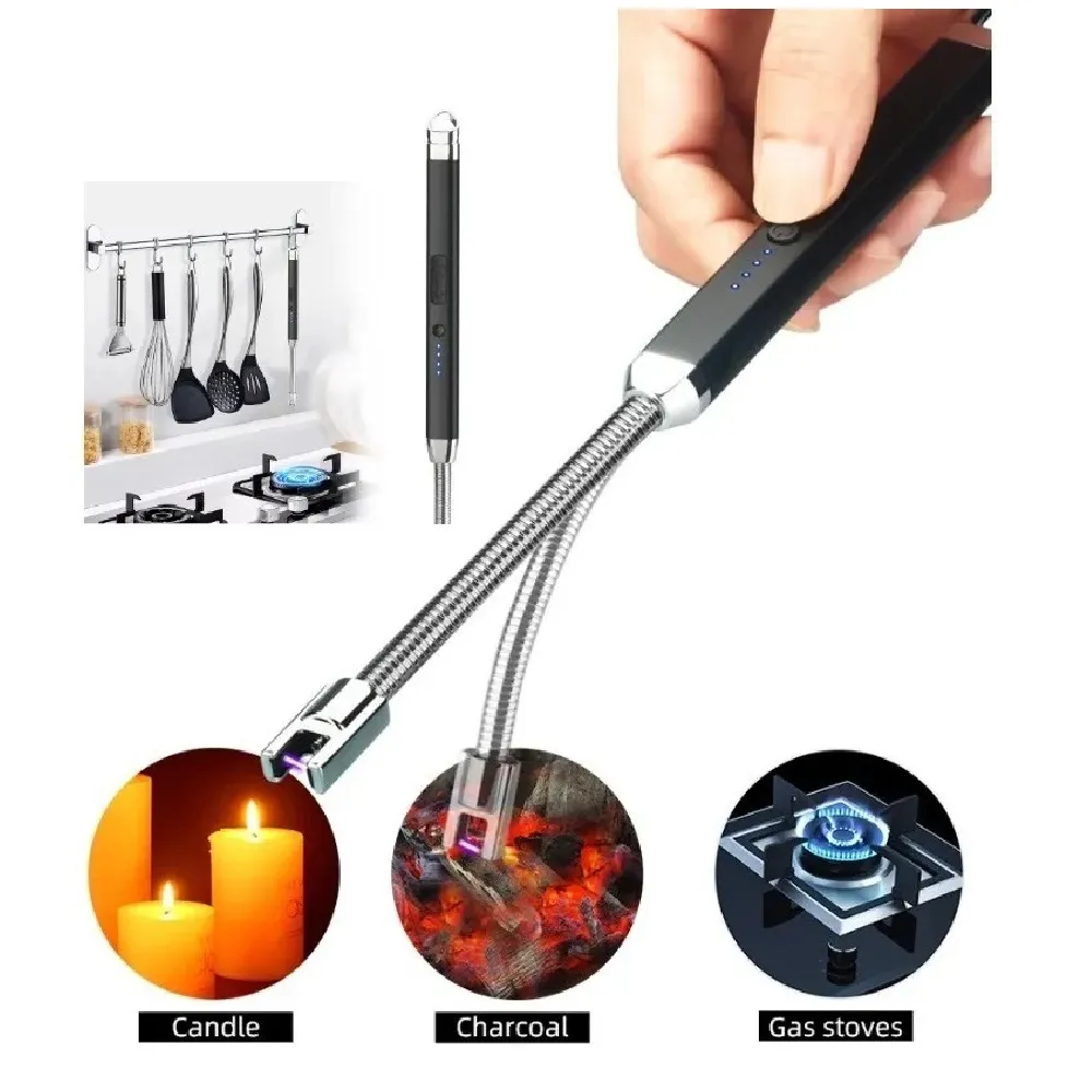 Encendedor Usb recargable sin aceite, encendedor de pulso de llama abierta de 360 °, encendedores eléctricos de arco, estufa, encendedor de barbacoa, encendedores de cocina, regalos
